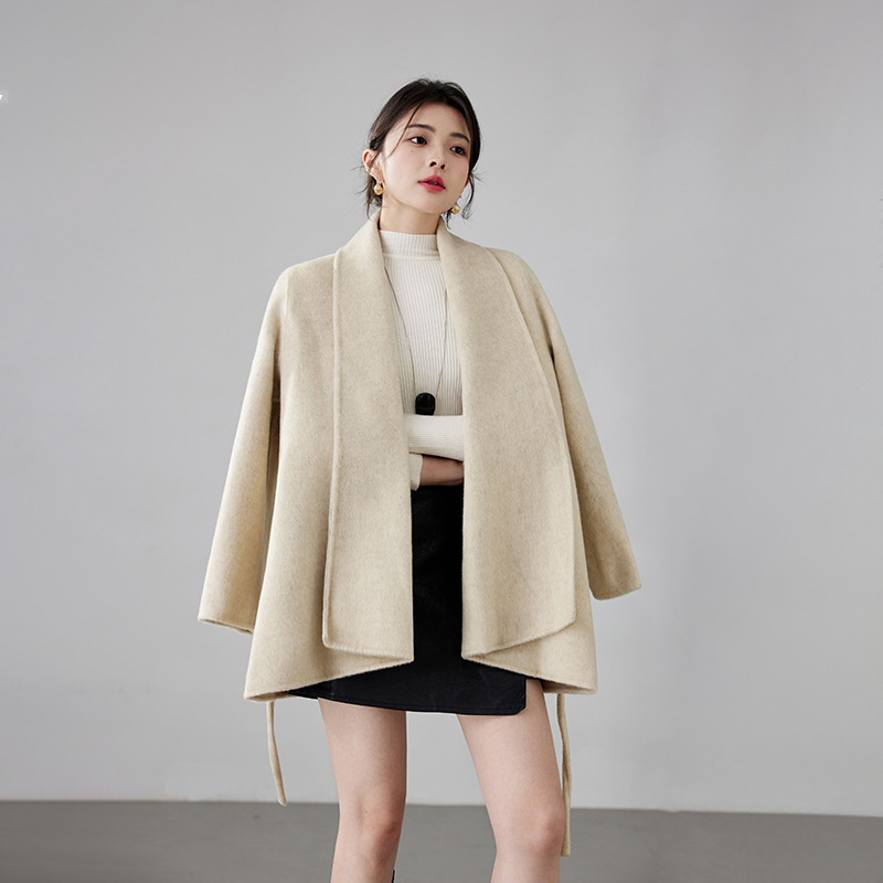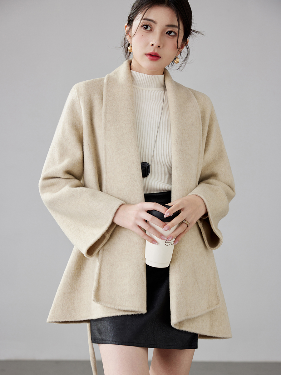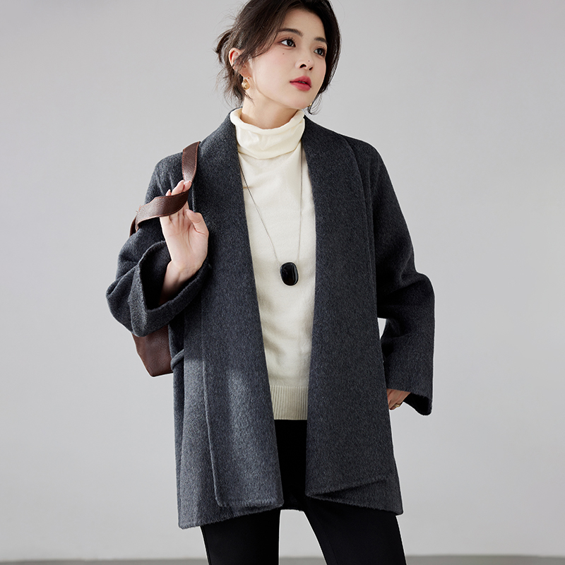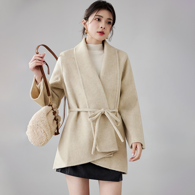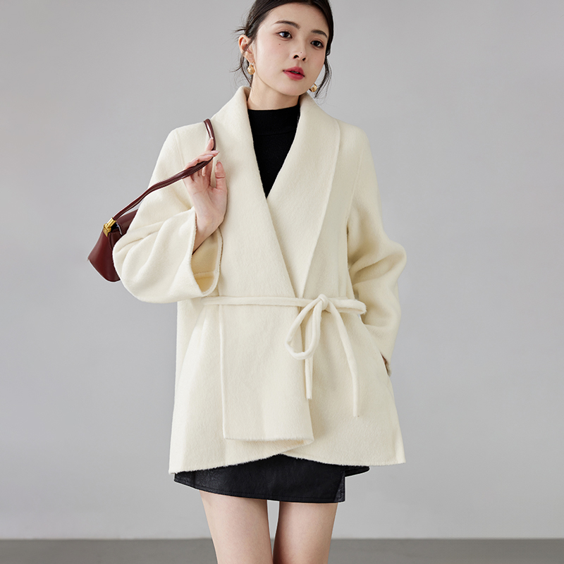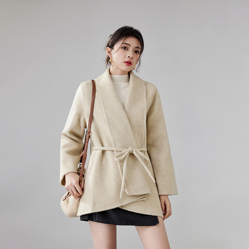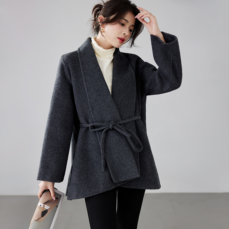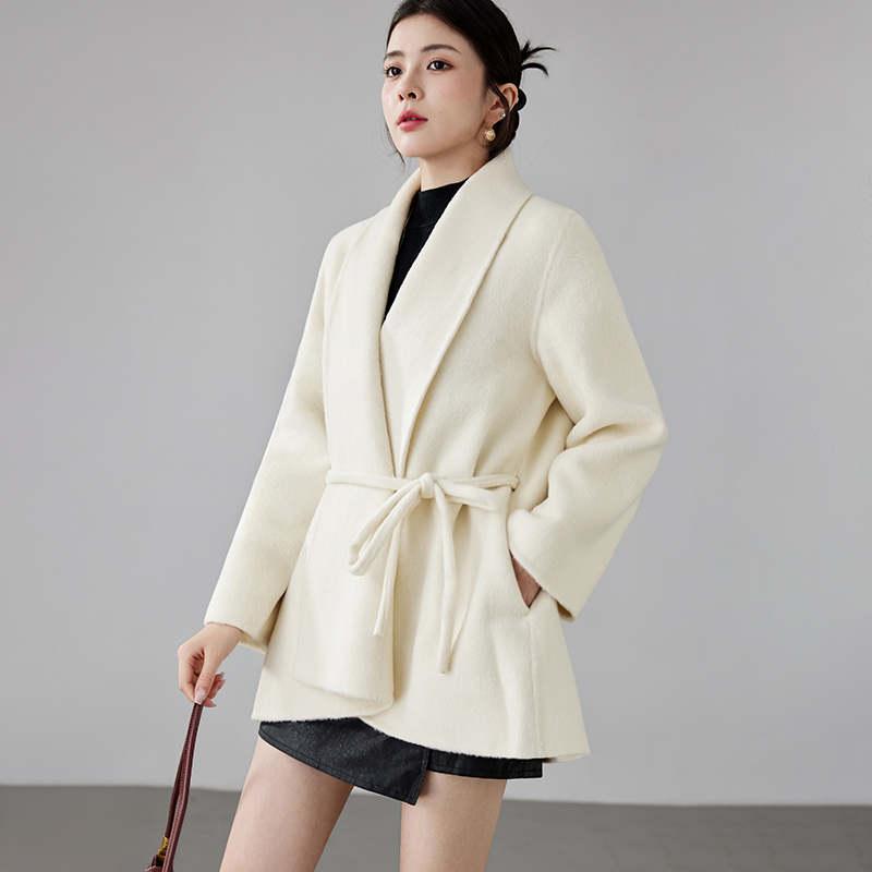 Women's 2025 A/W New Korean Petite Double-sided Cashmere Coat | Robe-style Tie Waist Woolen Outerwear