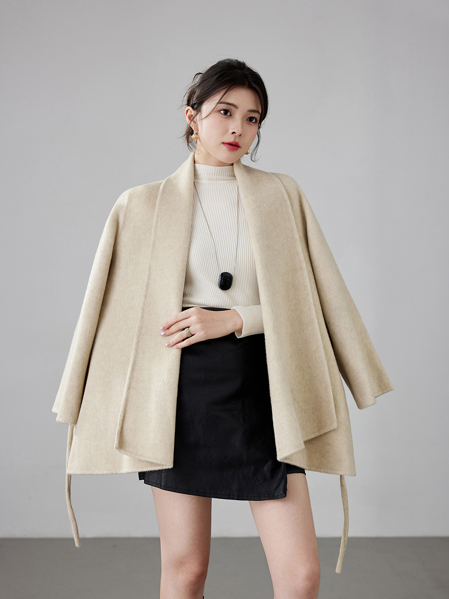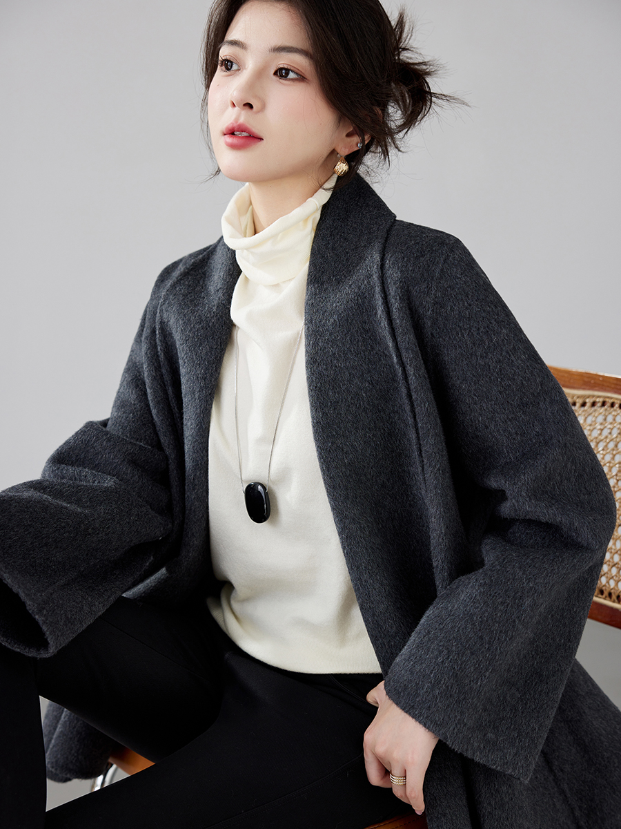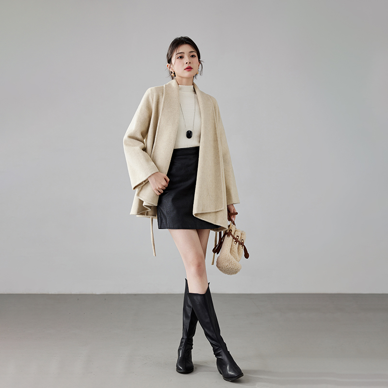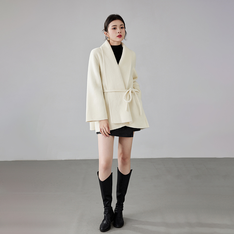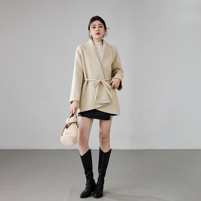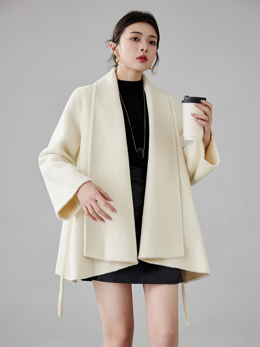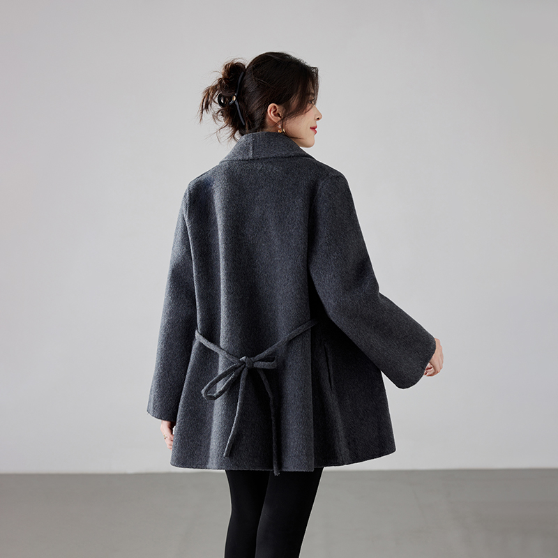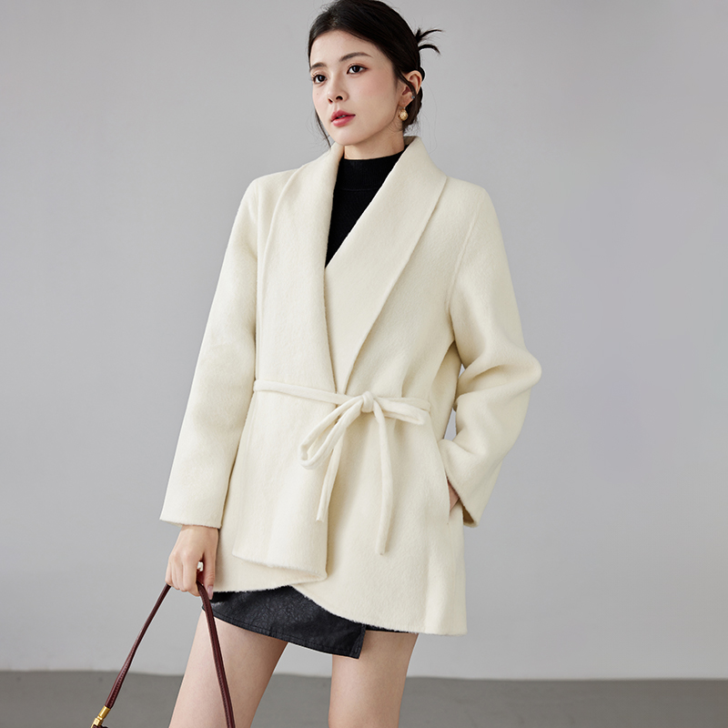 Women's 2025 A/W New Korean Petite Double-sided Cashmere Coat | Robe-style Tie Waist Woolen Outerwear