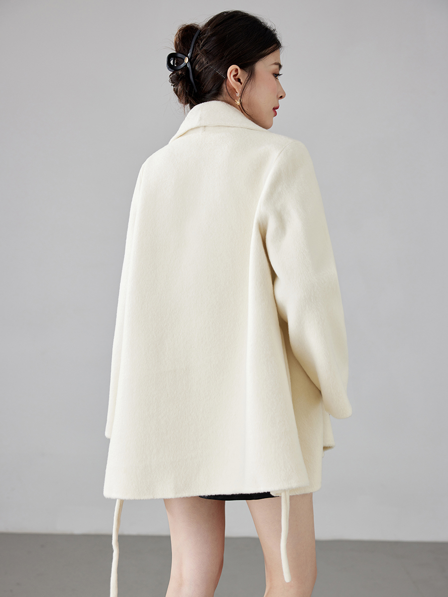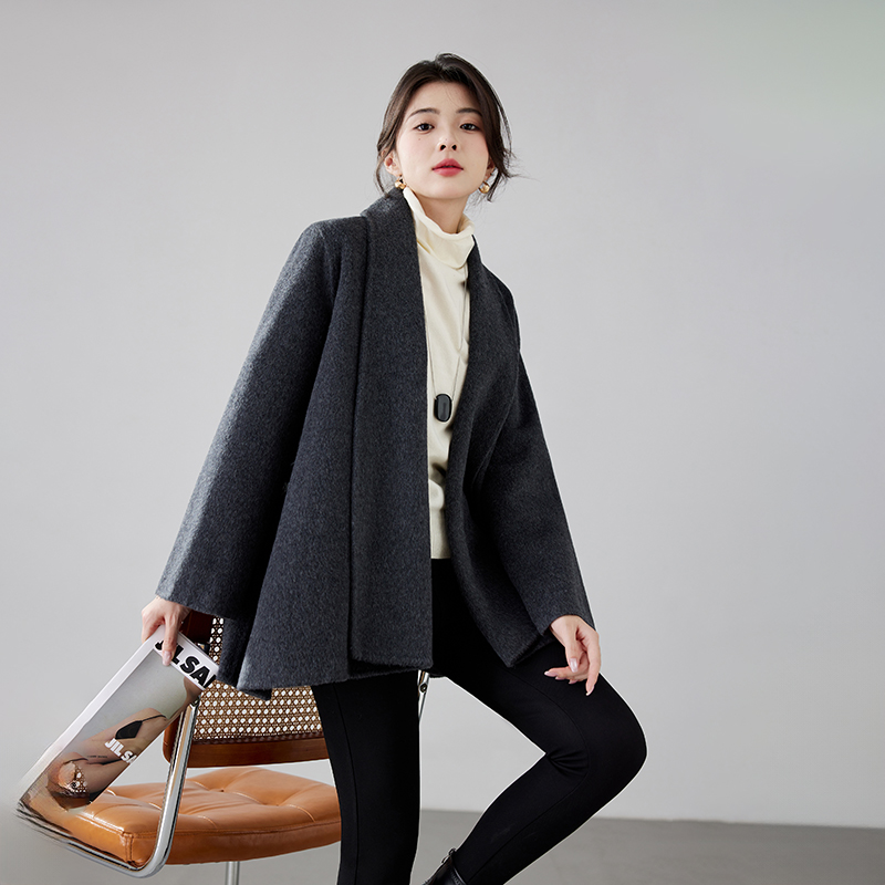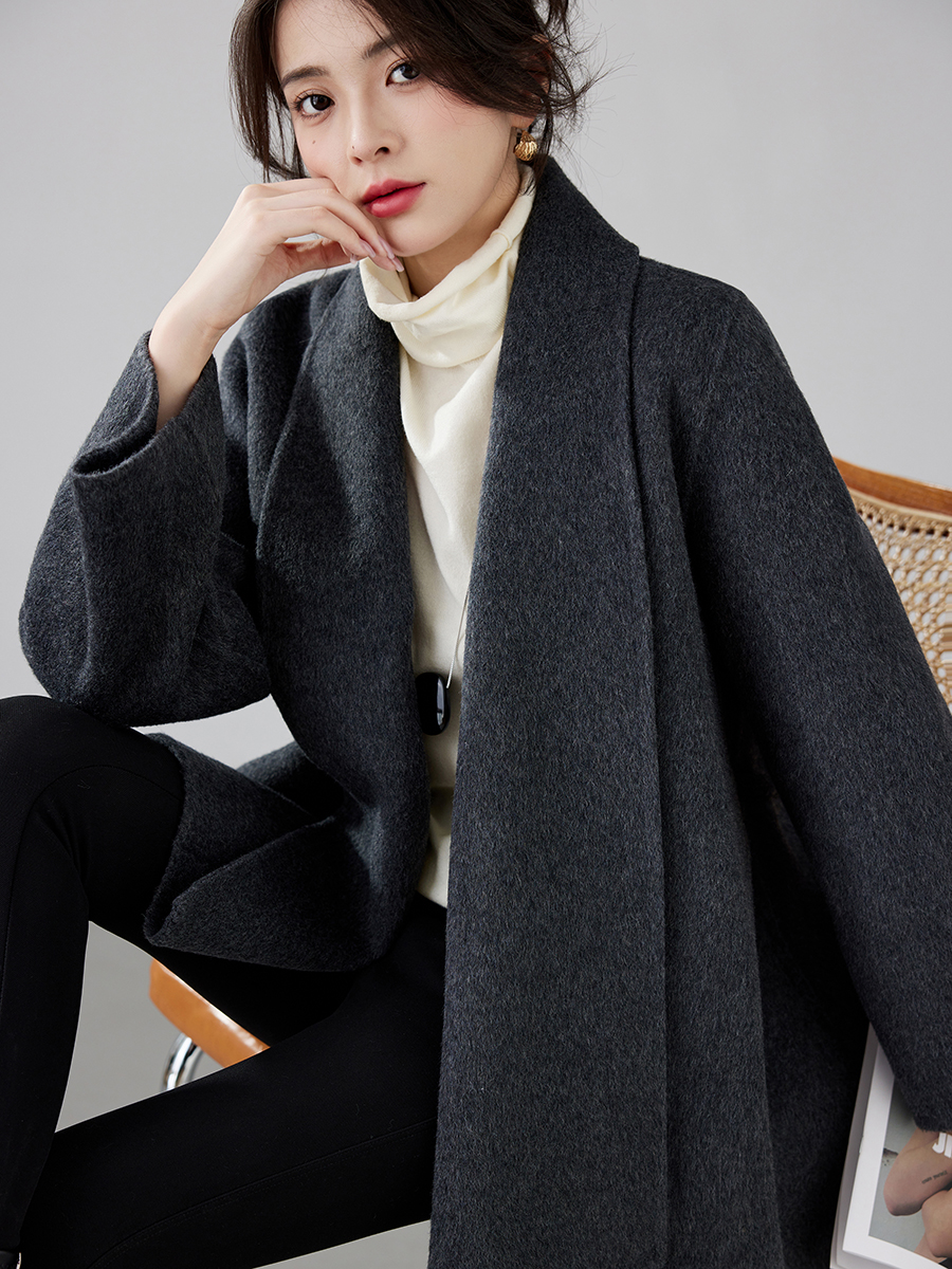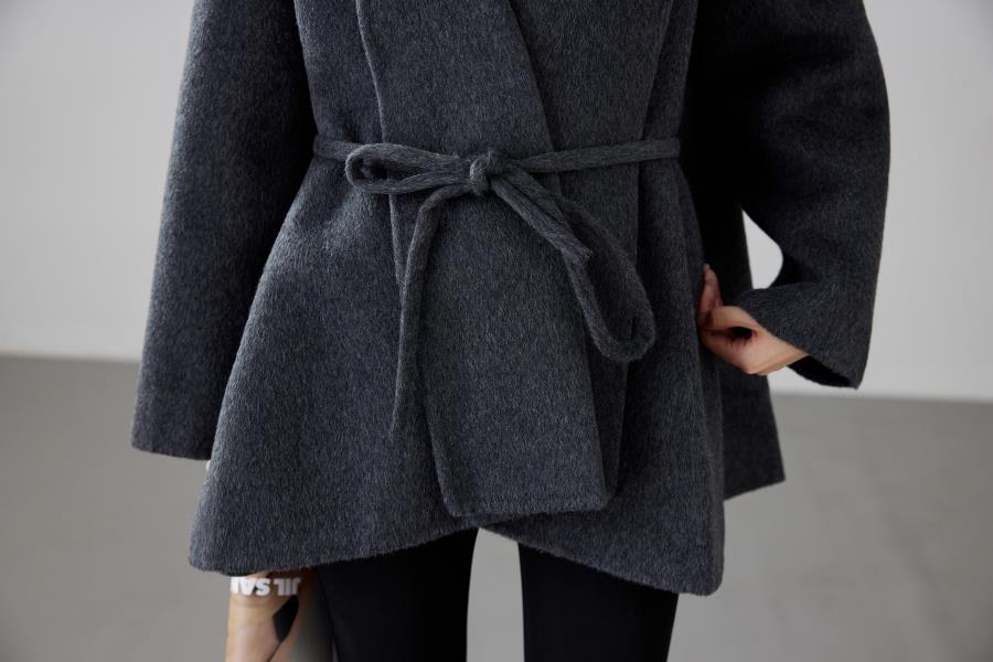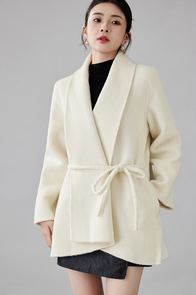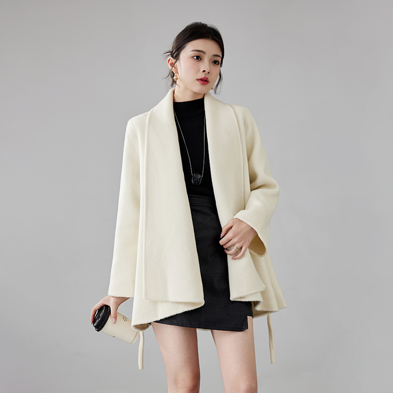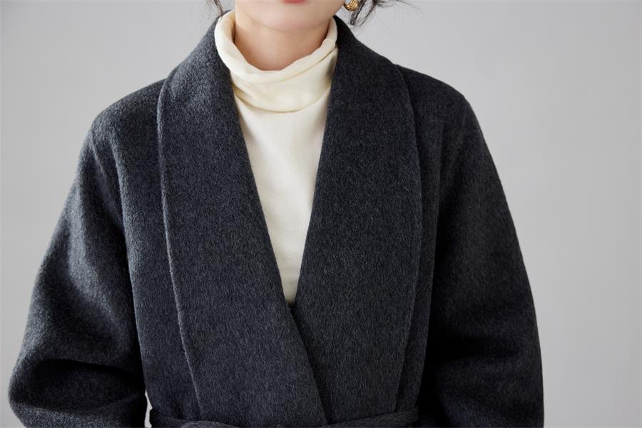Women's 2025 A/W New Korean Petite Double-sided Cashmere Coat | Robe-style Tie Waist Woolen Outerwear