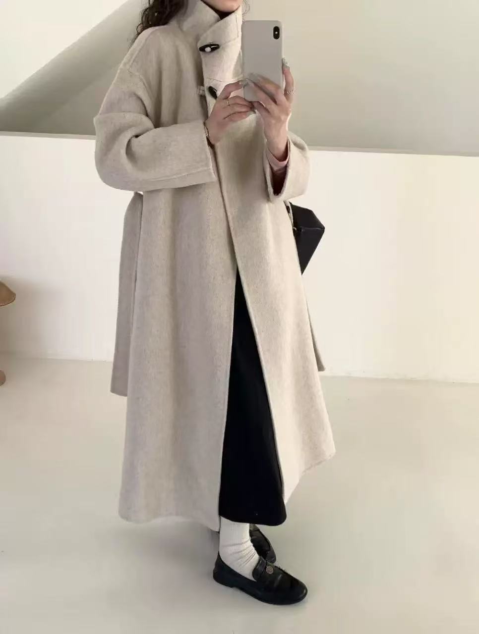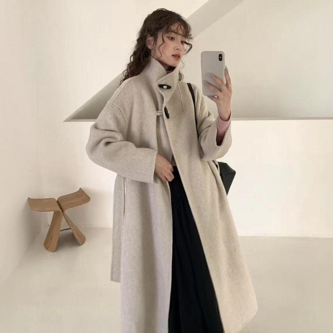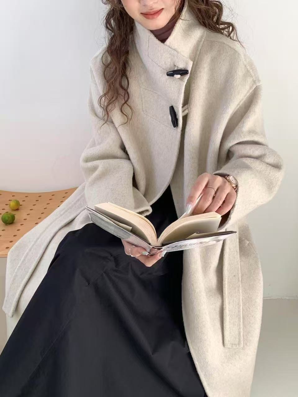 Women's High-End Double-Faced Cashmere Coat | Mid-Length, Stand Collar & Belted | Thickened Wool Blend | 2025 Autumn/Winter New Arrival