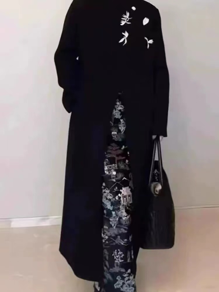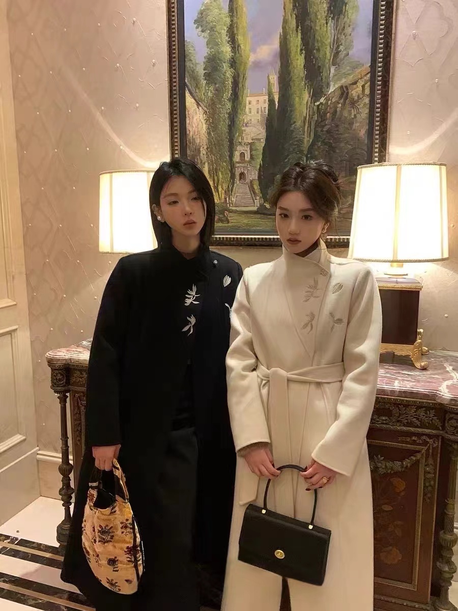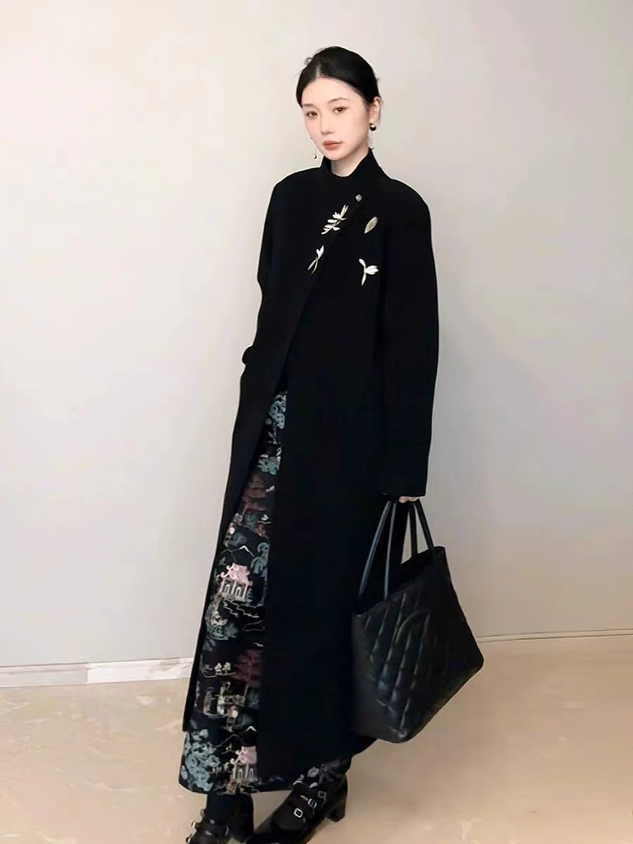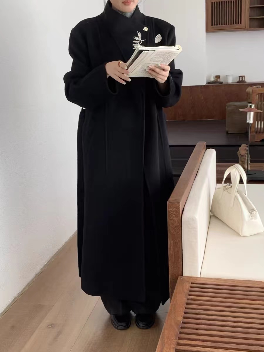 Women's 2025 A/W New Chinese Stand-up Collar Double-faced Cashmere Coat | Embroidered Long Woolen Outerwear